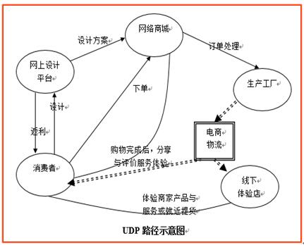 UDP模式即User DesignPromotion,用户设计推广模式。这一模式很好地体现了O2O的线上与线下互动功能,充分地调动了消费者和其他供应链成员的参与。O2O企业可以把采购、设计、生产、销售、物流等环节中的一个或几个拿出来,设置合理的激励方式,使消费者、配送企业、体验店、网店等成员充分参与进来,最大程度发挥O2O的线上线下优势。