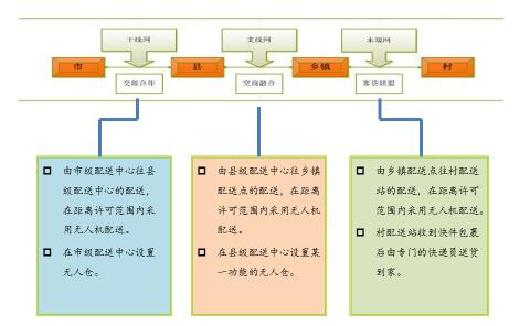 将传统的公路运输、铁路运输、水运、空运以及无人机和“缆车技术+”技术等有机地结合起来,形成多联式运输与配送方式,构建出更为科学合理的面向农村电商物流的“快捷”配送体系,破除制约我国农村电子商务发展的物流“最后一公里”配送瓶颈,建立起高效的城乡一体化、网络化、社会化的供应链管理体系。