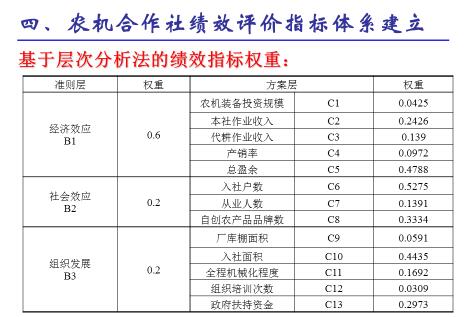 (2)明确设计绩效评价指标体系应遵循的原则,设计了基于供应链的农机合作社绩效评价二级评价指标体系,并采用AHP方法确定了各指标的权重。