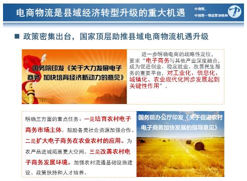②农村电商快速发展。预计全国农村网购市场规模到2018年将达到2500亿元,我国现有农村物流体系不足以支撑农村电子商务发展;
