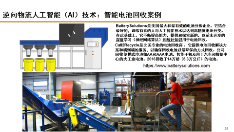 这是美国智能电池的回收,他们电池全部赋码,回收非常高效,通过新能源车电池回收,使得逆向物流成为额外的利润增长点。