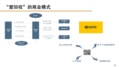 中欧国际工商学院一位金融与会计学教授这样评价:“爱回收的商业模式不仅仅是一个可持续的商业模型,同时也被充分赋予了企业社会责任的内涵。很多时候把企业社会责任视为企业的成本,但在爱回收的案例中,可以清楚地看到企业社会责任是能够给企业带来商业回报的。”2015-2017年,超过200多个垂直类做二手回收的逆向物流创业项目,领域包括二手汽车、手机、家电、衣物、玩具等诸多方面,仅二手汽车交易的项目就超35个,二手手机交易平台超32个。另外,苹果、华为、微信和顺丰也都加入了进来。