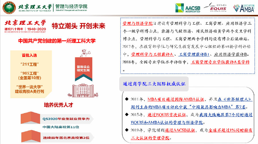 在开始汇报前,我希望帮我所在工作单位,也就是北京理工大学做一个广告,因为他一直以来都是比较低调的。北京理工大学是中国共产党创建的第一所理工科大学,是首批进入211、985以及世界一流大学建设行列的A类高校。而我所在的管理与经济学院有3个一级学科博士点,分别是管理科学与工程、工商管理和应用经济学,其中管理科学与工程在2017年度的学科评估中获得A-。目前我们学院已通过国际三大权威认证,分别于2011年通过AMBA认证,2014年通过EQUIS认证,2019年通过AACSB认证,现在是全球不超过1%同时拥有三大论证的管理学院。在此,我诚挚地邀请各位领导、专家、同行们能够莅临北京理工大学管理与经济学院进行指导和交流工作。