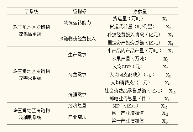 1.序参量指标构建,包括珠三角地区冷链物流供给系统、珠三角地区冷链物流需求系统、珠三角地区冷链物流辅助系统,具体指标如下图。
