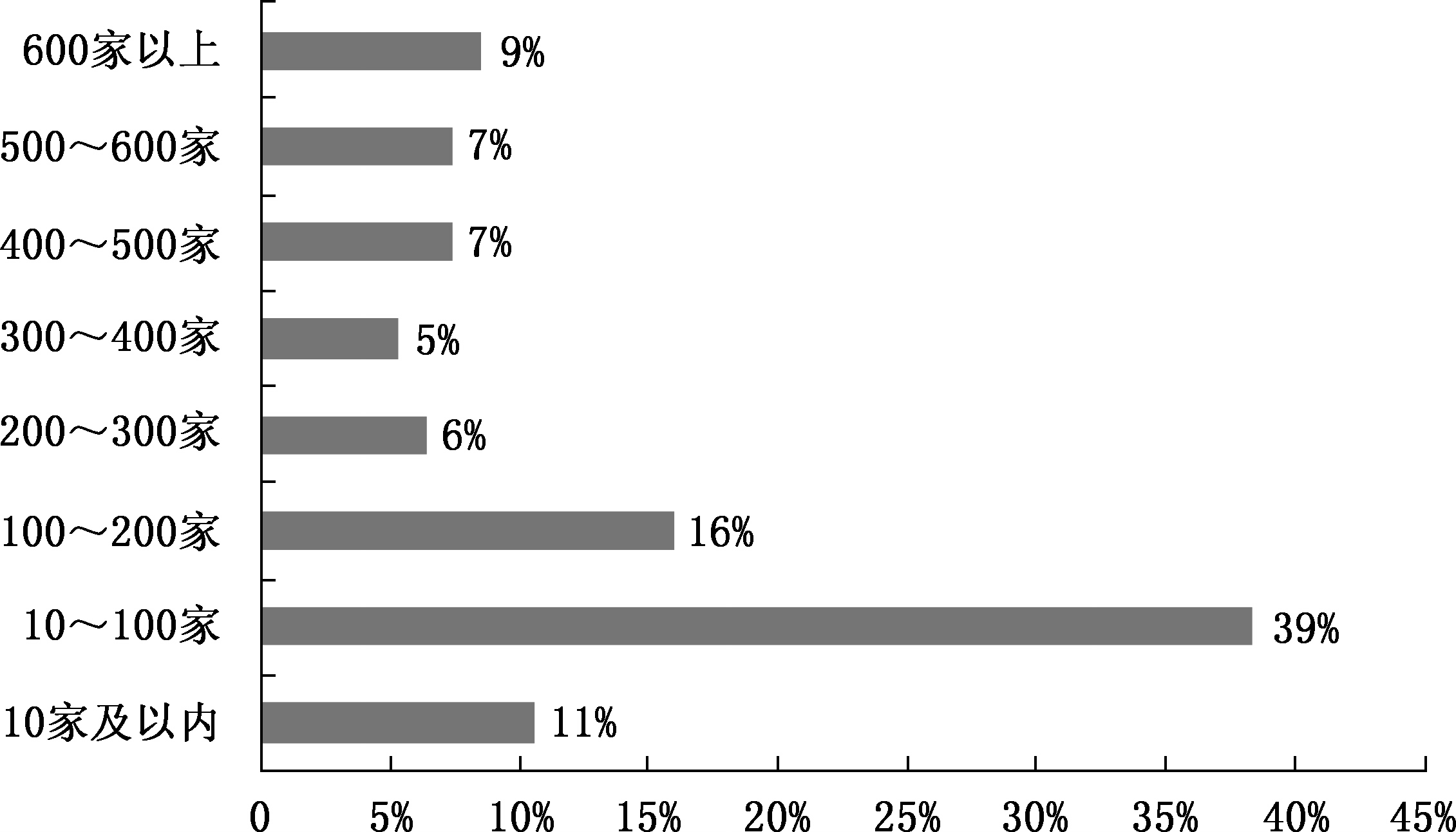 一一根据统计,2014年样本物流园区平均入驻企业数量为230家。具体分布如图27所示。