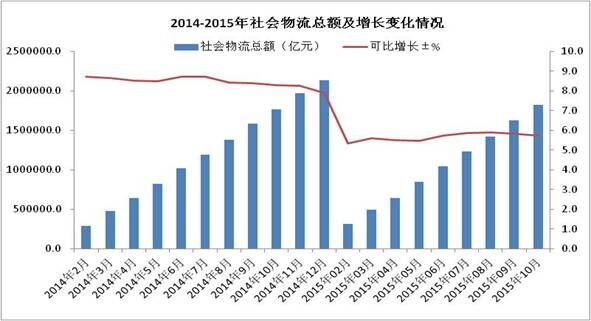 ----工业品物流需求增速小幅回落。1-10月,工业品物流总额同比增长6.1%,比1-9回落0.1个百分点,比1-8月回落0.2个百分点。