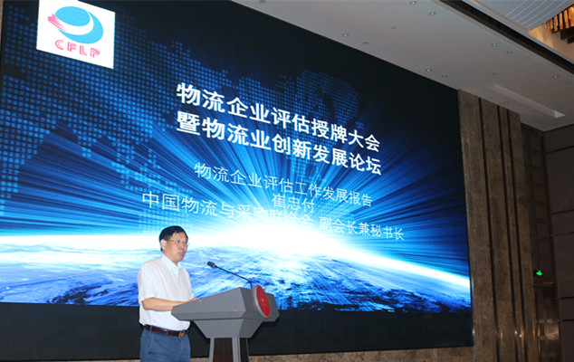 中国物流与采购联合会副会长兼秘书长崔忠付在大会上作物流企业评估工作发展报告
