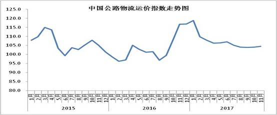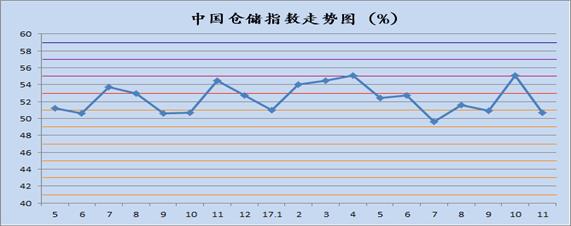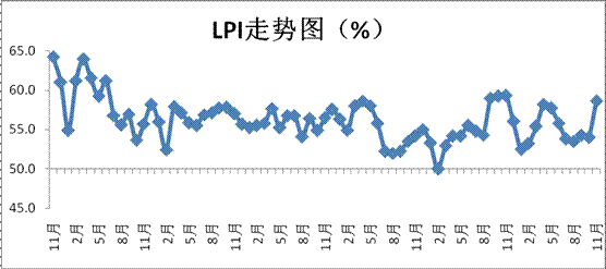 中国物流与采购联合会发布的2017年11月份中国物流业景气指数为58.6%较上月回升4.6个百分点;中国仓储指数为50.7%,较上月回落4.4个百分点;中国公路物流运价指数为104.5点,比上月回升0.4%。