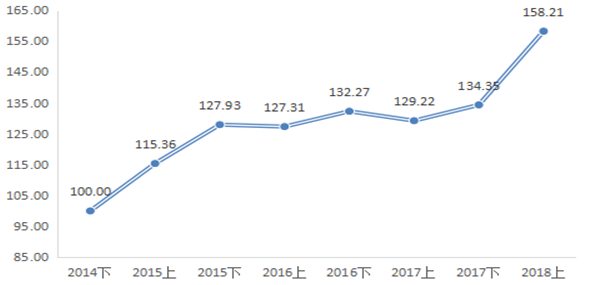 图1-6 2014—2018年上半年托盘产业贡献指数走势