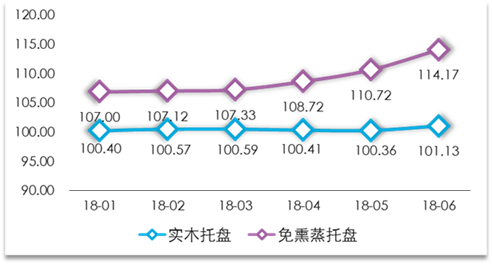 图1-2 2018年上半年实木托盘和免熏蒸托盘价格指数走势对比