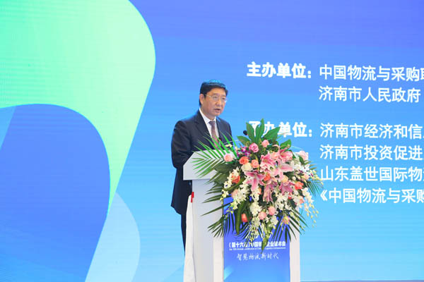 王忠林在致辞时代表济南市委、市政府向与会嘉宾表示热烈欢迎。他介绍,济南作为全国重要的综合性交通枢纽,发展物流业具有独特优势,物流产业在济南大有空间,大有前途,大有可为。当前,济南市把现代物流产业作为加快新旧动能转换,推动高质量发展的重要抓手,济南加快打造区域性物流中心的决心之大前所未有。抢抓机遇、走在前列,济南愿与大家携手打造“中国智慧物流名城”,“我们郑重承诺,将以最优厚的政策、最周到的服务、最完善的保障,为每一个到济南发展的物流企业营造更广阔的发展空间。我们热切期望,能与大家携手并肩、真诚合作,为把我国建设成为物流强国做出新的更大贡献。”他发出了诚挚的邀请。