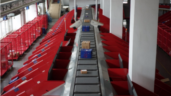 智配中心,定位于终端旗舰站点,是通过合理的场地规划,应用行业最先进的自动化分拣设备,结合京东多维度数据采集和预分拣技术,实现将货物自动分拣到配送员的路区。简单点说,就是用大型分拣中心自动化智能分拣系统的MINI版,来实现终端货物的集约化分拣。