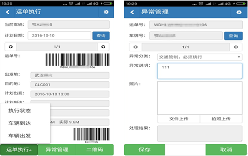 电子运单功能,实现了运单的无纸化,主要有四个功能:司机可查看下达的运输任务,及运单的执行情况;供应商起点的运单申报出发到达;司机主动申报异常及查看异常回复;在部分仓库入厂车辆排队的进厂主动通知。