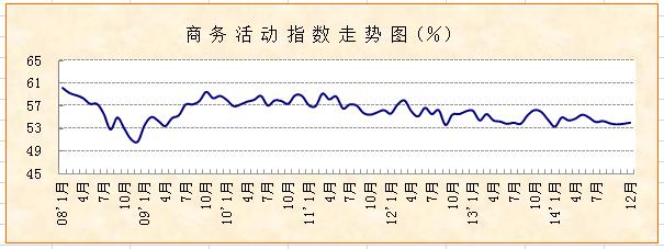 中国物流与采购联合会、国家统计局服务业调查中心发布的2014年12月份中国非制造业商务活动指数较上月小幅上升0.2个百分点,达到54.1%,显示非制造业经营活动保持增势,增速较上月有所加快。