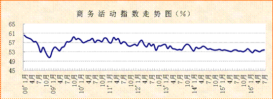 中国物流与采购联合会、国家统计局服务业调查中心发布的2016年7月份中国非制造业商务活动指数为53.9%,环比上升0.2个百分点,连续五个月稳定53%以上,表明非制造业经济平稳快速增长的格局没有变。