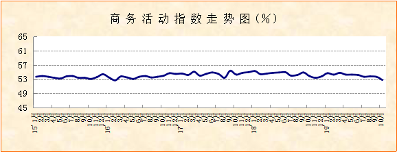 中国物流与采购联合会、国家统计局服务业调查中心发布的2019年10月份中国非制造业商务活动指数较上月回落0.9个百分点至52.8%,创年内新低。新订单指数较上月回落1.1个百分点至49.4%。投入品价格指数和销售价格指数较上月分别回落1.5和1.1个百分点至51.3%和48.9%。综合指数变化,受需求回落影响,市场经营活动和价格均有回调,非制造业增速有所趋缓,但52.8%的指数水平表明非制造业仍保持较快增长趋势。