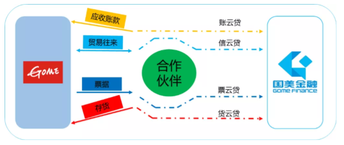 国美根据自身优势,在内部供应链金融产品开发上贴合上下游企业的需要,共开发出账云贷、信云贷、货云贷、票云贷四款产品。