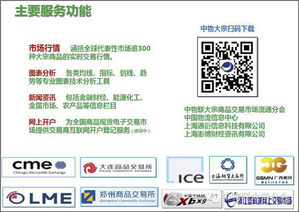 中物大宗是由中国物流与采购联合会大宗商品交易市场流通分会、中国物流信息中心、找钢网、上海通衍信息科技和上海彭博网络数据信息咨询有限公司等共同携手推出的中国大宗商品实时行情信息发布平台。其目的旨在发挥信息引领作用,提升行业各类信息资源的共享和利用效率,使我国大宗商品的产需衔接更加顺畅,商品流通更加高效,为我国大宗商品市场及实体企业更好地融入全球经济提供支持。同时,大宗商品市场权威行情价格的发布,也有利于树立行业标杆,提升我国大宗商品市场的社会地位和国际话语权,促进行业规范有序发展。