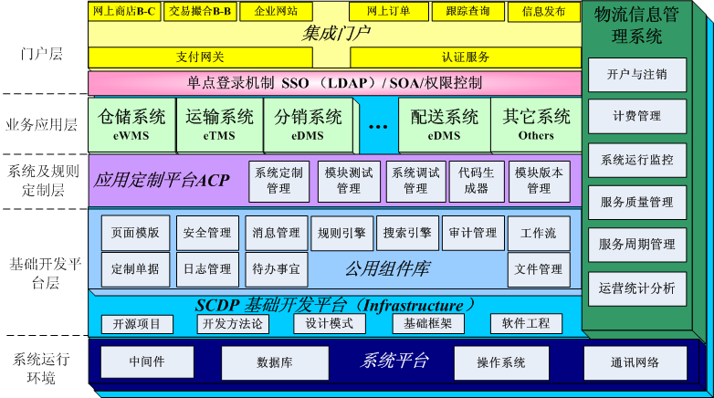 采用开放式互联网计算技术及面向服务的体系架构,应用J2EE体系并采用Struts框架构建,基于专门针对供应链领域构建的eSCDP基础开发平台及ACP应用配置框架开发。集成数据交换引擎及B2BI(基于WebServices及XML技术构建)接口技术,具有良好的技术稳定性及扩展性。