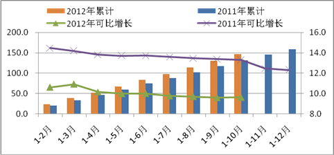 9月、10月以来我国物流运行呈现企稳回升向好势头,但社会物流总费用依然较高,物流经营效益下滑状况仍没有明显改观。十八大报告明确指出,要加快传统产业转型升级,推动服务业特别是现代服务业发展壮大,为物流业发展明确了方向。预计四季度经济运行仍具备走稳的条件,全年社会物流总额仍将保持平稳较快增长。针对物流运行中的问题,经济政策应坚持调整宏观经济结构和提高微观经济活力并举,为物流业可持续发展创造有利条件。