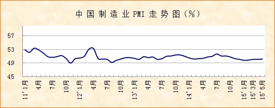 中国物流与采购联合会、国家统计局服务业调查中心发布的2015年5月份中国制造业采购经理指数(PMI)为50.2%,较上月略升0.1个百分点,主要分项指数多呈小幅上升,尤其是新订单和新出口订单指数回升较为明显,显示稳增长政策效果逐渐显现,市场需求趋于改善,生产形势稳中有升,企业经营状况整体良好,就业形势基本稳定,经济增长基础趋于巩固。