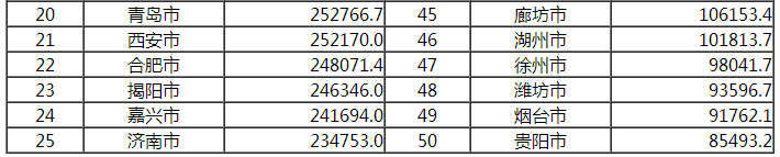 快递业务收入前50位城市情况表