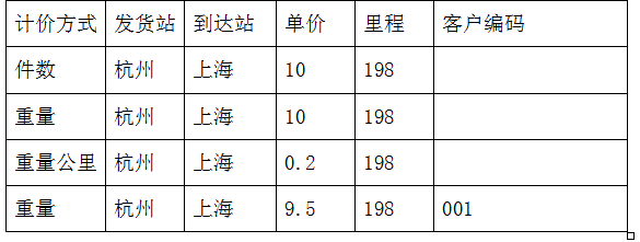 5、运量区间价格,协议客户根据不同运量区间计算,按照发货地点和卸货地点的里程,根据货运单的重量所在的不同运量区间选择基础运价表里的重量公里单价,自动计算运费。
