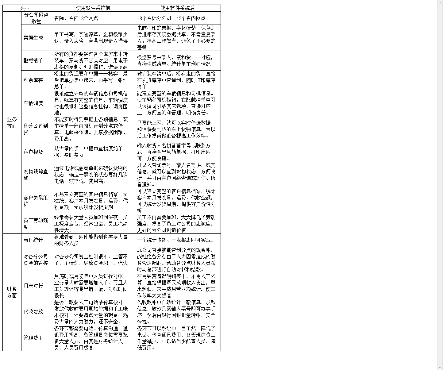 郑州鸿泰物流公司在使用系统前后各方面的对比