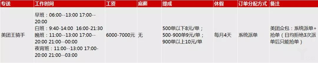 在美团,有直营、加盟及众包模式,不同的模式、不同的区域以及不同的团队的工资结算模式都不一样,比如王怡便是在加盟的团队,按单量提成工资月结,500单以下每单8元,500-900单每单9元,900单以上每单10元,在扣除各项费用之后,王怡一个月能拿到六七千元。
