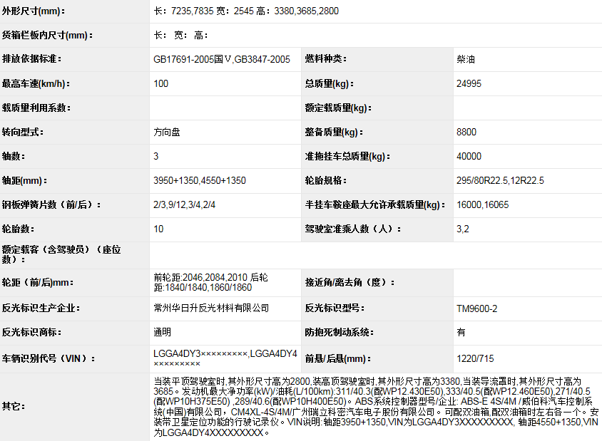 从公告来看,乘龙T5配备潍柴发动机,提供375、400、430、460四种不同马力选择;在整车长度方面,乘龙T5提供7.535米和7.835米两种选择,轴距分别为3.95米+1.35米和4.55米+1.35米。在驾驶室方面,乘龙T5有高顶、平顶两种选择。平顶驾驶室高2.8米,高顶驾驶室则为3.38米,高顶驾驶室可选装导流罩,装配后整车高度为3.685米。