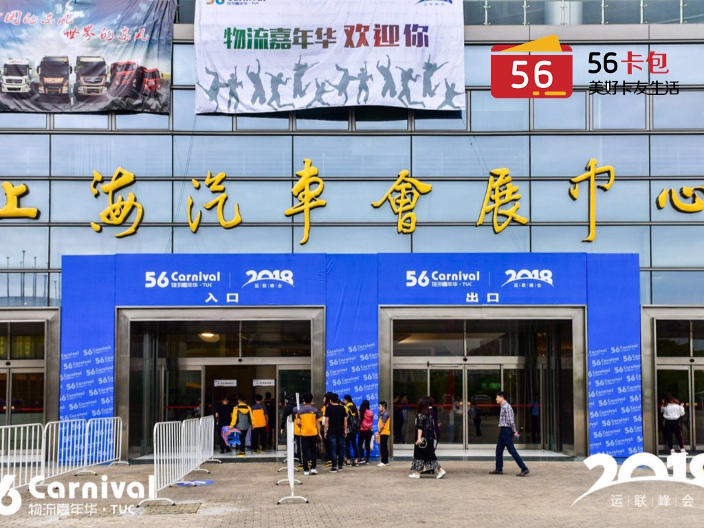 2018年5月5日至6日,物流人的狂欢节——56嘉年华在上海汽车会展中心举办,整个物流嘉年华活动分为主会场和分会场,涵盖运联峰会、细分领域论坛、互动竞技活动、展览展示,还包括工装秀大赛、亲子娱乐活动、竞技游戏、最美物流摄影展、叉车比赛和特色展览等丰富物流嘉年华活动。