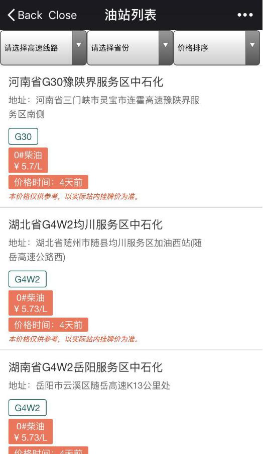 我们知道油品最高限价是全国统一的,由发改委制定。但每个地区的石油公司有降价的权利,允许他们低于发改委规定的限价,但不能高于发改委规定的价格)。这就导致了全国各地的中石化柴油价格不同。但是各地石油公司由于本身的利益关系,并不愿意对外公开油站的价格。