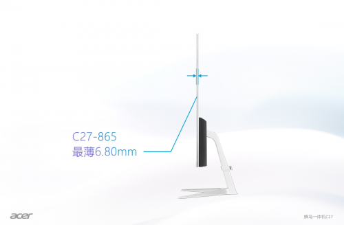 除了屏幕,在产品外观设计上,宏碁也下足了功夫。宏碁蜂鸟C27一体机采用了超轻薄设计,整机重量仅4Kg,至薄处仅6.8mm,搭配接口后置的设计,更加节省空间,置于桌上典雅简约,彰显用户品味。