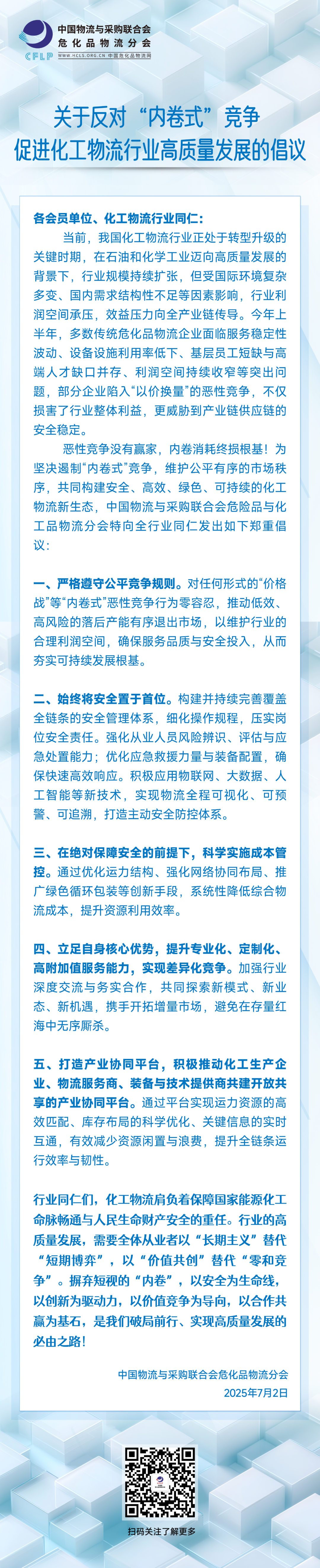 《关于反对“内卷式”竞争 促进化工物流行业高质量发展的倡议》