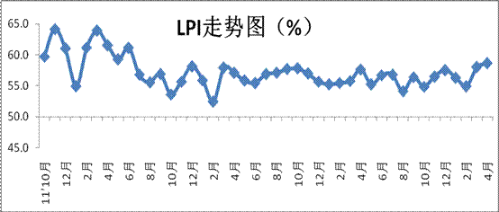 中国物流与采购联合会发布的2015年4月份中国物流业景气指数(LPI)为58.6%,比上月回升0.6个百分点。各分项指数均有不同程度的回升。