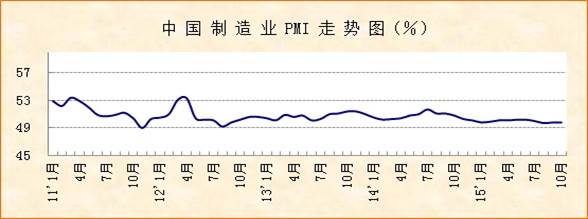 中国物流与采购联合会、国家统计局服务业调查中心发布的2015年10月份中国制造业采购经理指数(PMI)为49.8%,同上月持平。主要分项指数有升有降,波动幅度较小。从PMI来看,当前经济运行保持平稳走势。