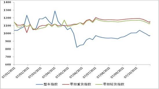 各车型指数均有所回升,零担指数环比涨幅整体略高于整车指数。本周,整车指数为975.1点,比上周回升0.6%,比年初回升5.5%;零担轻货指数为1136.2点,比上周回升1.2%,但比年初回升2.7%;零担重货指数为1154.4点,比上周回升1.0%,比年初回升4.0%。