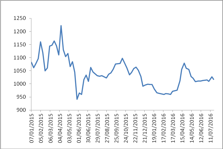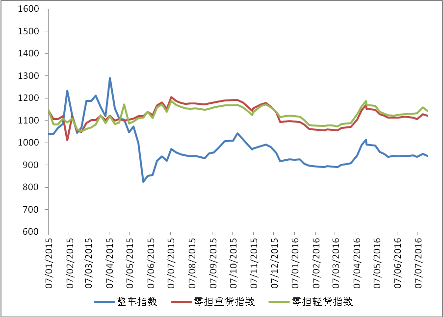 本周(2016年7月18日~7月22日),由中国物流与采购联合会和林安物流集团联合调查的中国公路物流运价指数1017.2点,比上周回落0.99%,比上年同期下降2.0%。