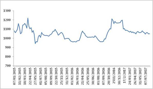 图 1 2015-2017年各周中国公路物流运价指数