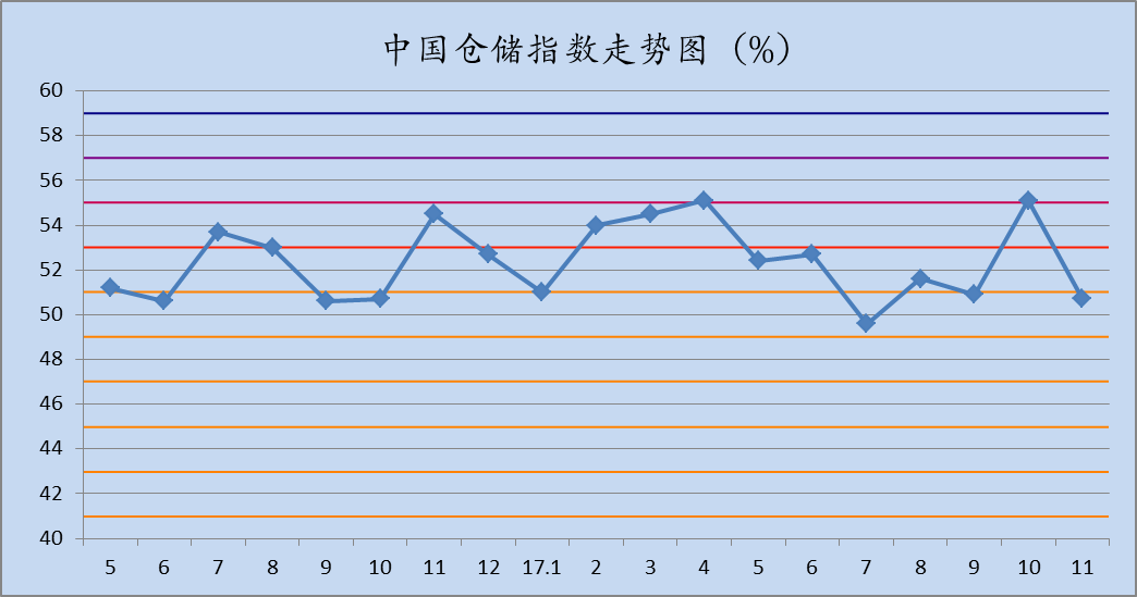 中国物流与采购联合会与中储发展股份有限公司联合调查的2017年11月中国仓储指数为50.7%,较上月回落4.4个百分点。各分项指数中,除延伸业务量指数、企业员工指数较上月有所回升外,其余指数均有不同程度的回落。