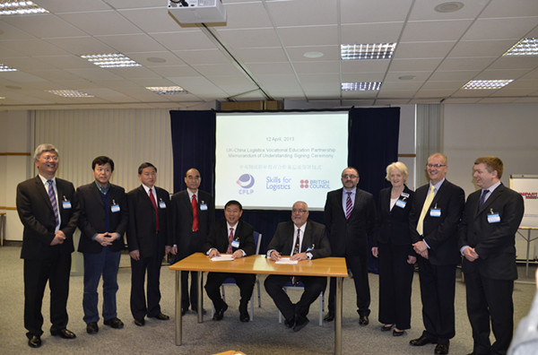 2011年,中国教育部和英国商业、创新与技能部签署了《中英职业教育合作备忘录》。在中英职业教育合作框架下,2013年中国物流与采购联合会(CFLP)、英国文化协会(British Council)、英国物流技能协会(Skills for Logistics)在英国正式签署三方合作备忘录(MOU)。经过5年的努力,中英在物流行业标准与证书互认、现代学徒制试点推广、合作办学、师资培训、活动交流等方面显著成果,合作项目得到教育部、英国大使馆、合作企业和院校的一致认可。
