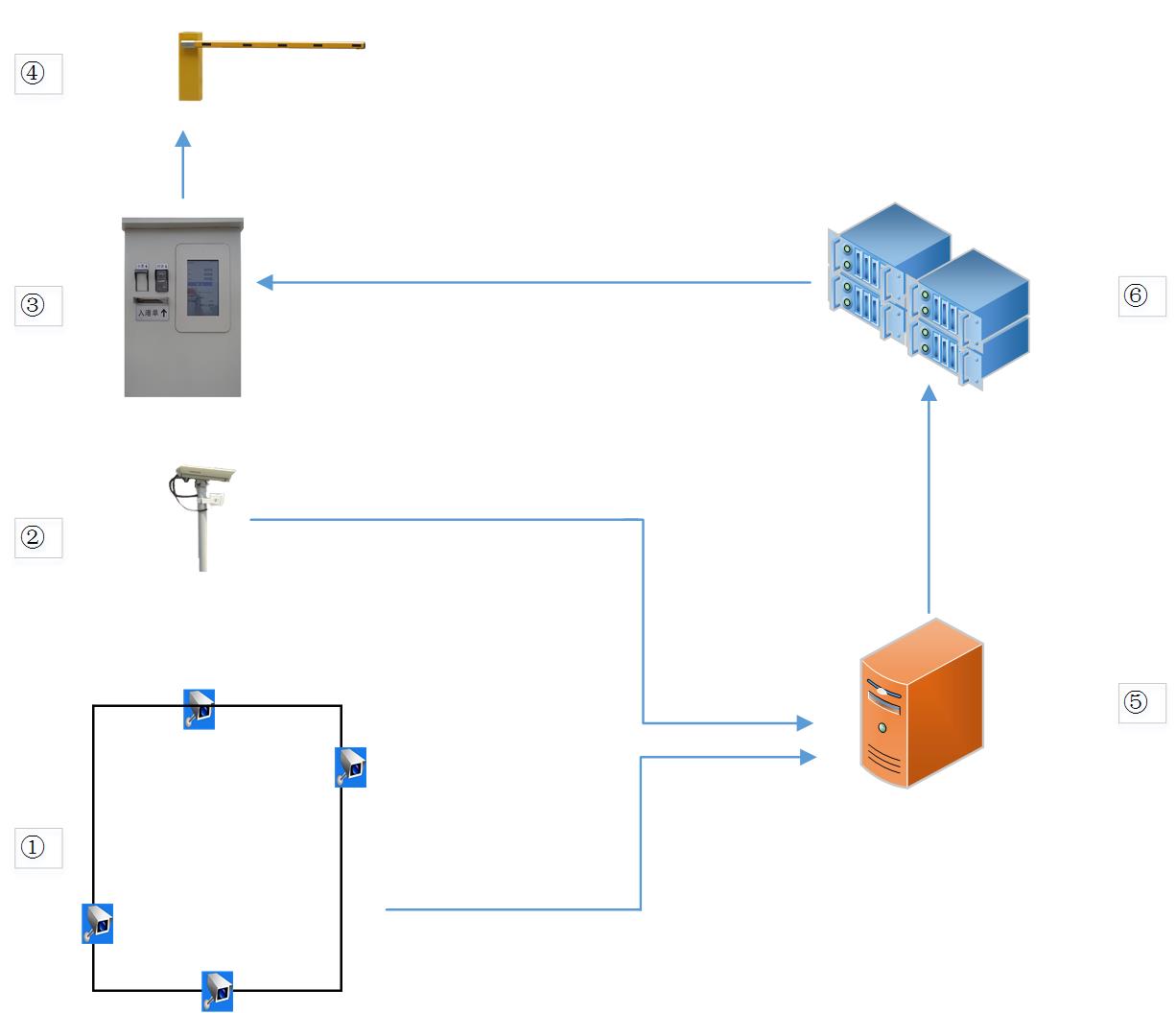 由防撞道闸、地感线圈(或者红外栅栏)、二次开发主板、车辆检测器组成。系统正常工作时,由值守程序向智能道闸发送开闸指令,道闸控制器接受命令,起杆,地感线圈(或者红外栅栏)检测到车辆完全通过后,自动落杆。