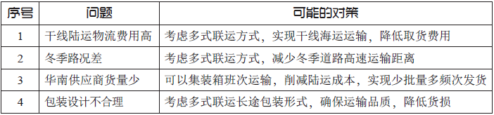 传统国产零部件运输主要依靠集装箱海运和内陆干线公路运输两种模式。其中集装箱海运,大连地区集装箱线路主要为原材料和大宗物资转运线路,加之工厂建设初期货量少,汽车零部件往华东运输的集装箱费用偏高。而内陆干线公路运输,受到东北冬季季节气候影响,内陆干线道路条件差、雨雪拥堵严重,无法满足工厂生产件运输纳期短、交货时间精度要求高的需要。
