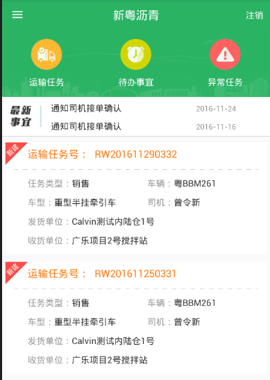管理人员APP,部门经理图表监控、项目经理发货、加工管理、运输调度员选择承运商,如下图