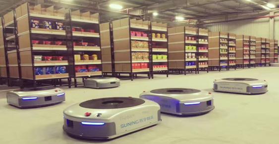 在苏宁全面自动化仓库进程中,不断探索和创新仓储运营解决方案。在解决小件仓储空间利用效率方面,积极采用高密度存储的方式;在提高人员拣选效率方面,积极变革流程推行实时优化拣选路径和订单结构优化作业;在仓库投资成本及回收效率提高方面,积极应用先进设备设施。综上三方面应用及解决,苏宁积极基于AGV智能设备的仓储应用,AGV可实现货到人,自动化分拣等多种高效运作模式。