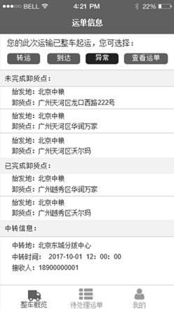 随着移动互联网产业的迅猛发展,基于Android和iOS等主流操作系统的智能终端设备普及程度提高,原有的物流运输线下或业务系统跟踪显然不够便捷准确。运输系统利用移动应用模式协助办公实现了第三方合同物流快递式单页面全生命周期管理,实现转运分拨和任务抽查,可将招商物流线下操作转换成线上跟踪,提升监控力度,解决内部系统无法管控上下游企业问题,实现业务端管理覆盖,储配送物流全程可视化协作、提高作业效率、提升企业物流服务能力。客户通过移动端接入我司的TMS平台,实现在途信息实时共享、在线评价、精细化轨迹展示功能,此举加强了与客户的沟通,可以显著提高服务水平及客户满意度。