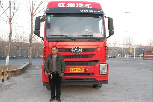 牛师傅的眼中有一些血丝,看着有点疲惫,但是精神头却非常不错,见到我们非常的高兴,健谈而热情,很乐于跟我们分享自己的卡车生活和用车感受。谈到为什么这么忙,牛师傅说:“一方面是我有一些老客户的固定货源,提前好几天就订好了,还有就是这台配备科索9发动机的390马力红岩杰卡出勤率高,能够保证这种连续不间断的高强度使用频率“。