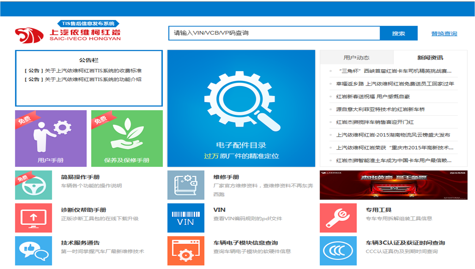 为了促进汽车维修业转型升级,提升服务质量,交通运输部联合商务部、国家工商总局等十部委联合制定了《汽车维修技术信息公开实施管理办法》,以下简称《办法》。为了贯彻落实该办法,上汽依维柯红岩商用车有限公司(以下简称“上汽红岩”)全新开发的“上汽依维柯红岩售后信息公开系统”(以下简称“系统”)近日正式上线。
