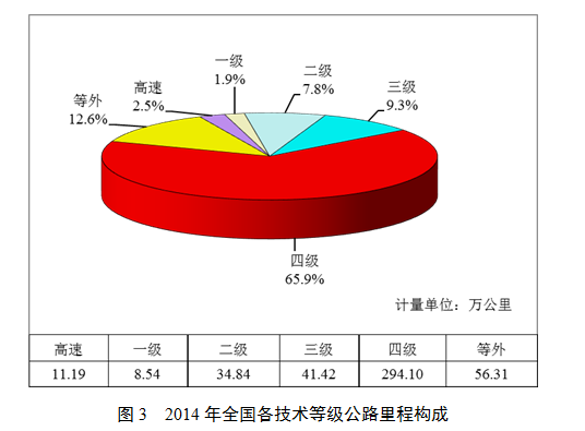各行政等级公路里程分别为:国道17.92万公里(其中普通国道10.61万公里)、省道32.28万公里、县道55.20万公里、乡道110.51万公里、专用公路8.03万公里,比上年末分别增加0.24万公里、0.49万公里、0.52万公里、1.45万公里和0.35万公里。