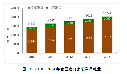 全国港口完成集装箱吞吐量2.02亿TEU,比上年增长6.4%。其中,沿海港口完成1.82亿TEU,内河港口完成2066万TEU,比上年分别增长7.1%和0.6%。